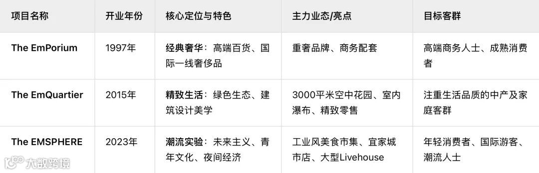 下表清晰地展示了EM District三大核心项目的差异化布局与协同策略: