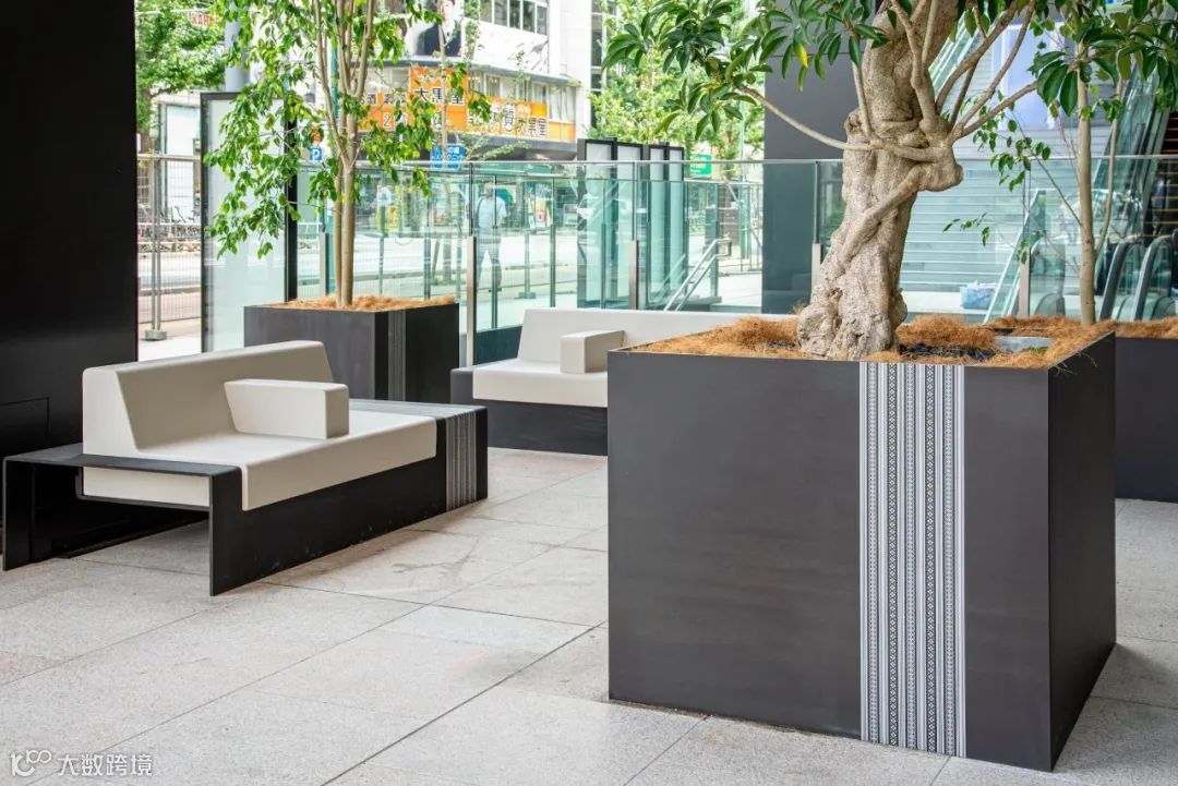 绿意配合简约的座位,创建了一个清幽淡雅的“城市休息室”。