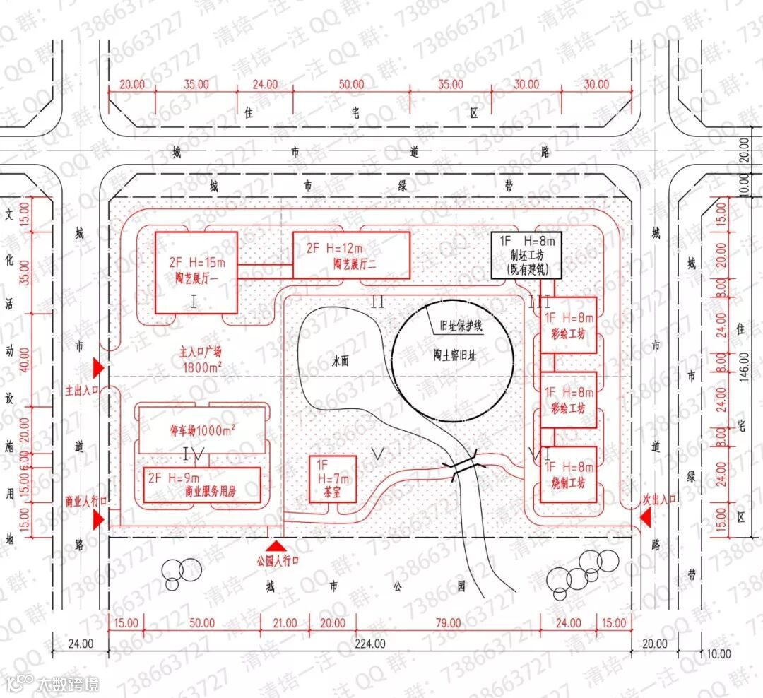 1. 陶艺文化园主出入口位于场地的:西侧(8分)