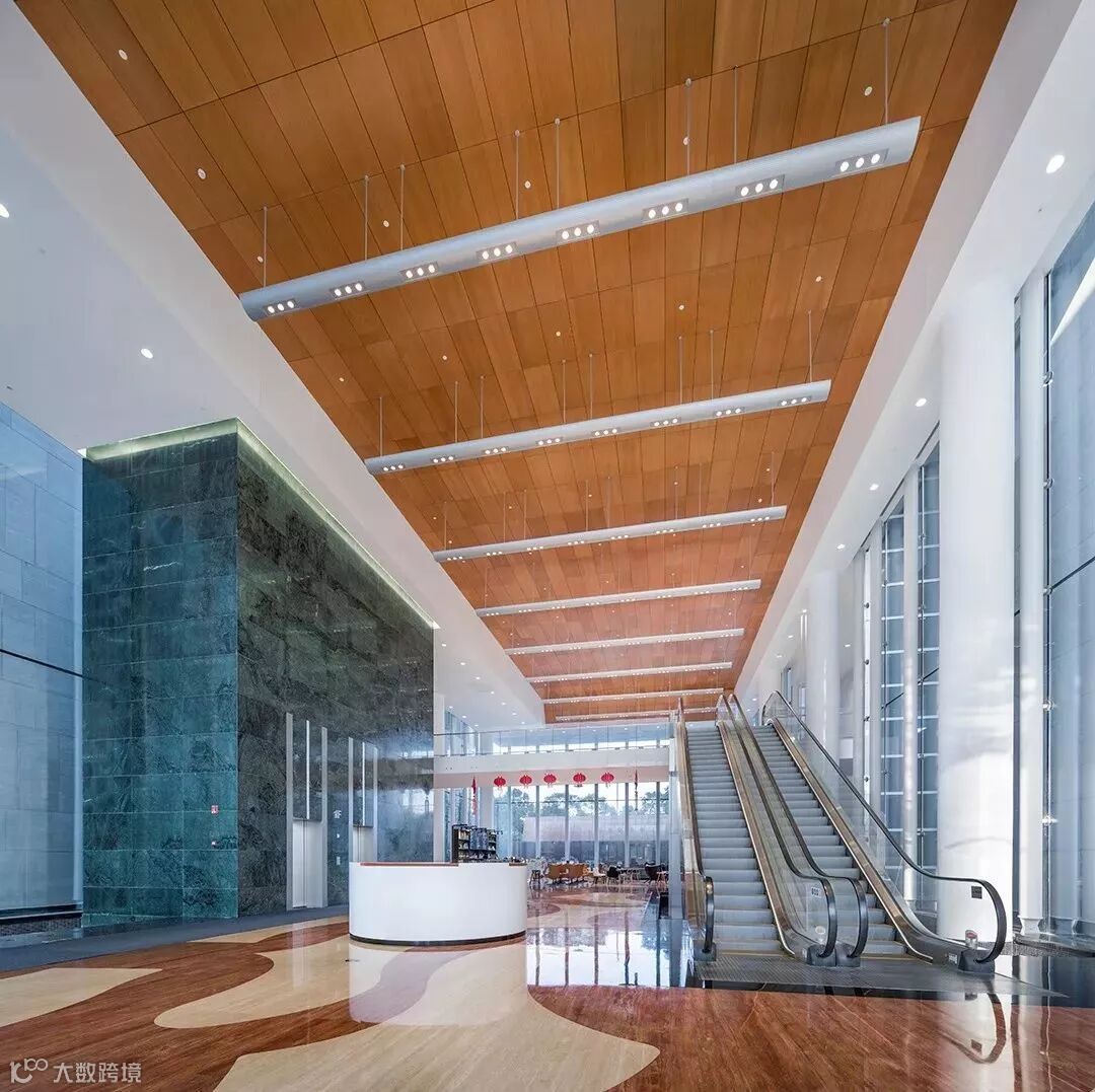 明成和上司周姐谈话的地方,实景是中衡设计研发大楼的一楼大厅,地面的大理石图案采用了苏州园林的花窗的纹饰,加上流水和连桥,既有苏式园林的人文气息,又现代简洁。