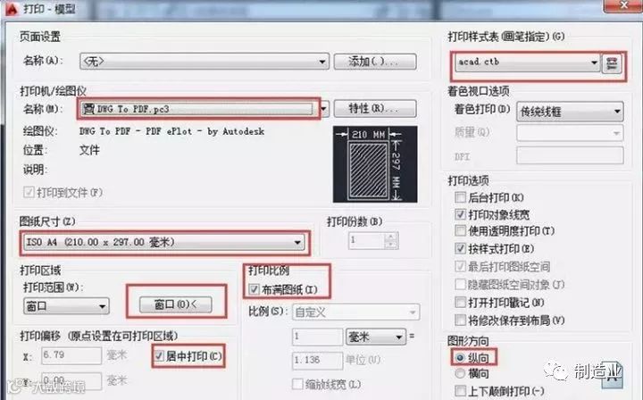 然后点击左上角「文件」-「打印」,在打印窗口中选择图纸、打印机、纸张幅面及方向等相关选项。