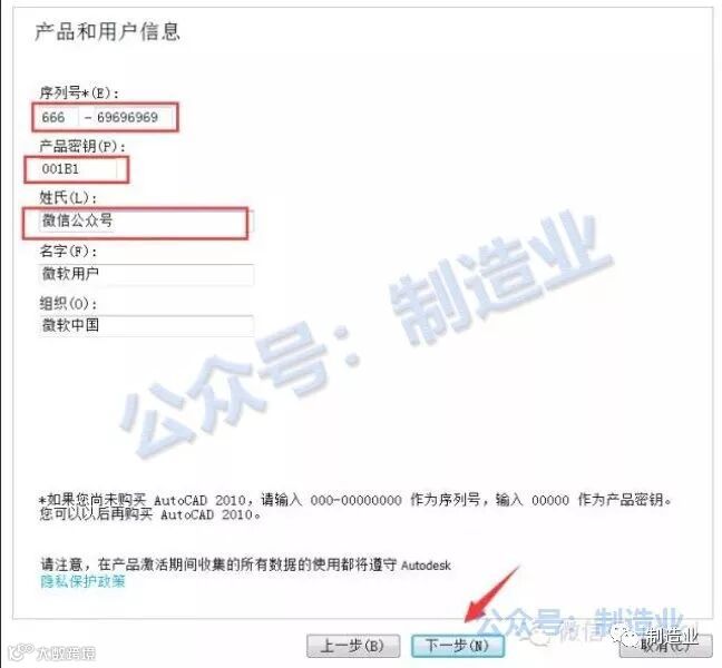7.序列号输入:666-69696969,密钥输入:001B1,姓氏随便输入:我输入微信公众号