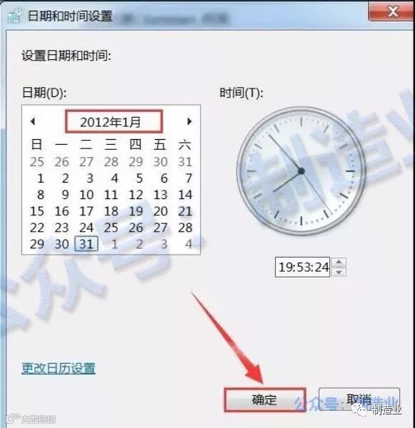 38.把电脑的时间改到2012年7月以前的日期,点击【确定】然后重新启动电脑。