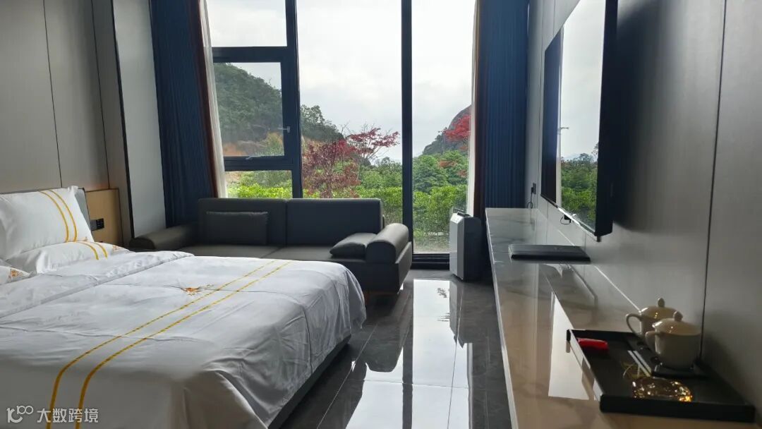 【圆楼景观大床房】一房,38平方米,1.8米大床一张,带茶空间、含双早。