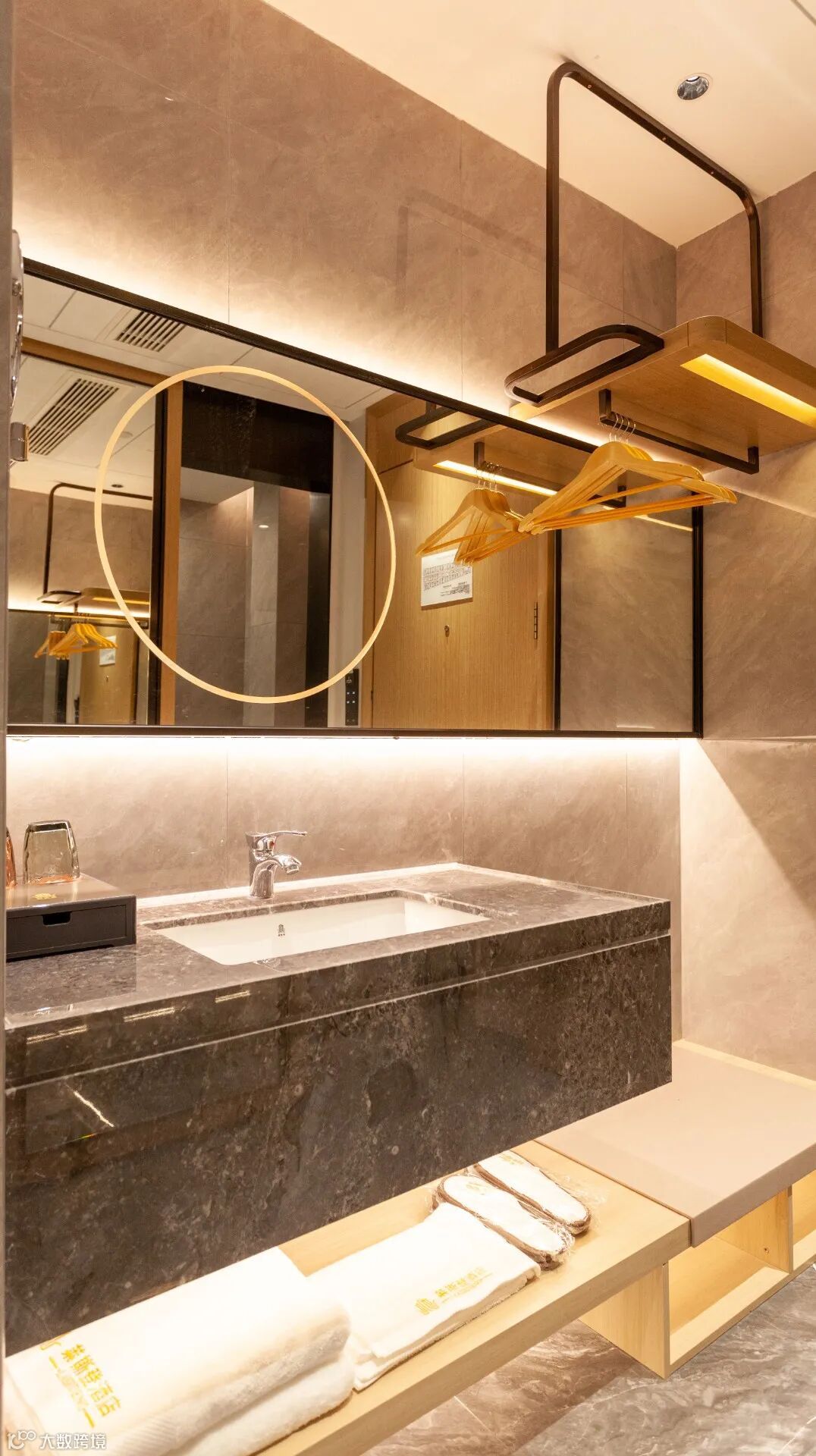 酒店室内灯光根据不同需求区域进行不同设计,烘托不同环境及使用功能。标识设计运用简单线条造型,容易识别,新颖不落俗套。