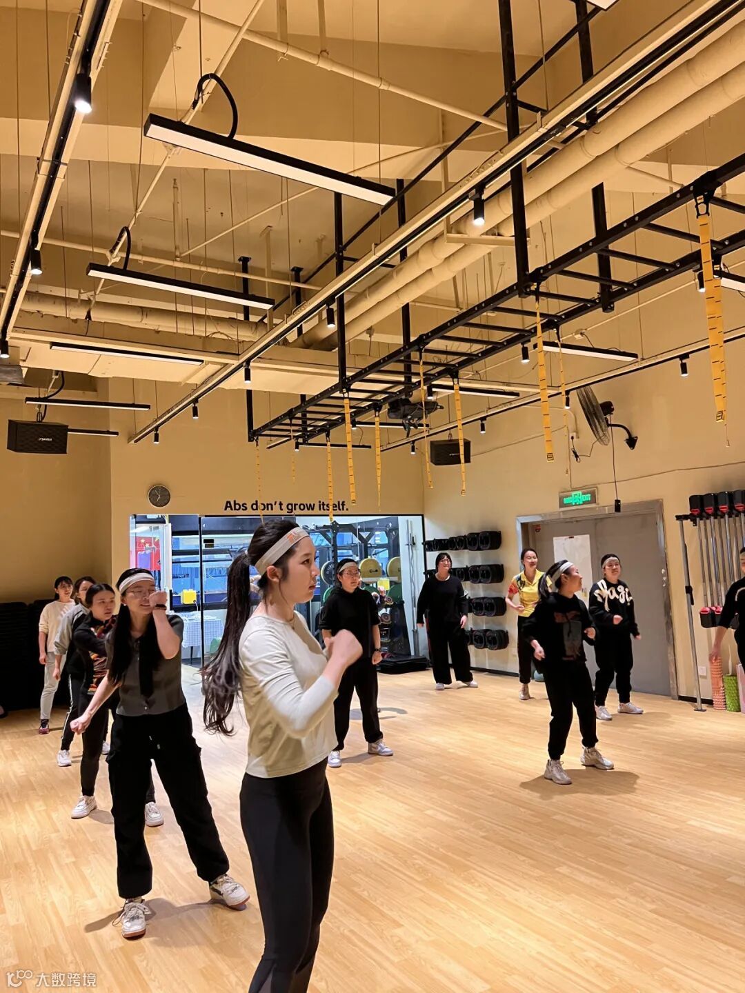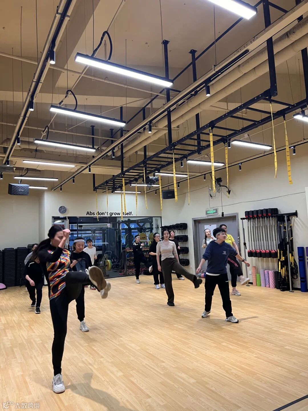 在搏击操教练带领下