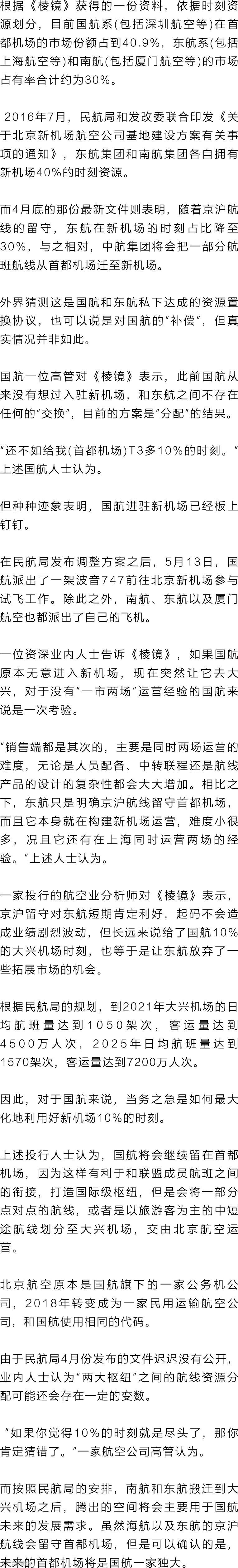 由于民航局4月份发布的文件迟迟没有公开,业内人士认为“两大枢纽”之间的航线资源分配可能还会存在一定的变数。