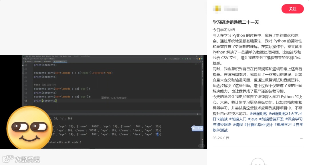 码途钥匙 21 天编程打卡计划给出答案 : 121名学员用坚持,把「编程小白」的标签撕得稀碎,在小红书、抖音、知乎、微博掀起学习风暴,让#码途钥匙打卡#话题直接杀疯!现在,跟着小码复盘这场「编程蜕变战」