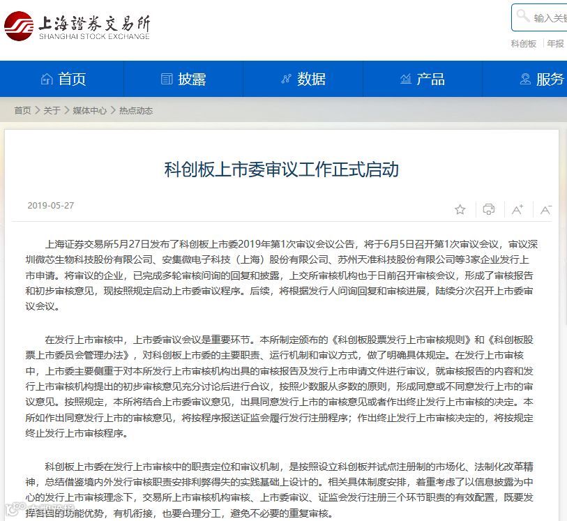 5月27日,上交所发布科创板上市委2019年第1次审议会议公告,微芯生物、安集科技、天准科技3家企业成为首批获得审议的“幸运儿”。