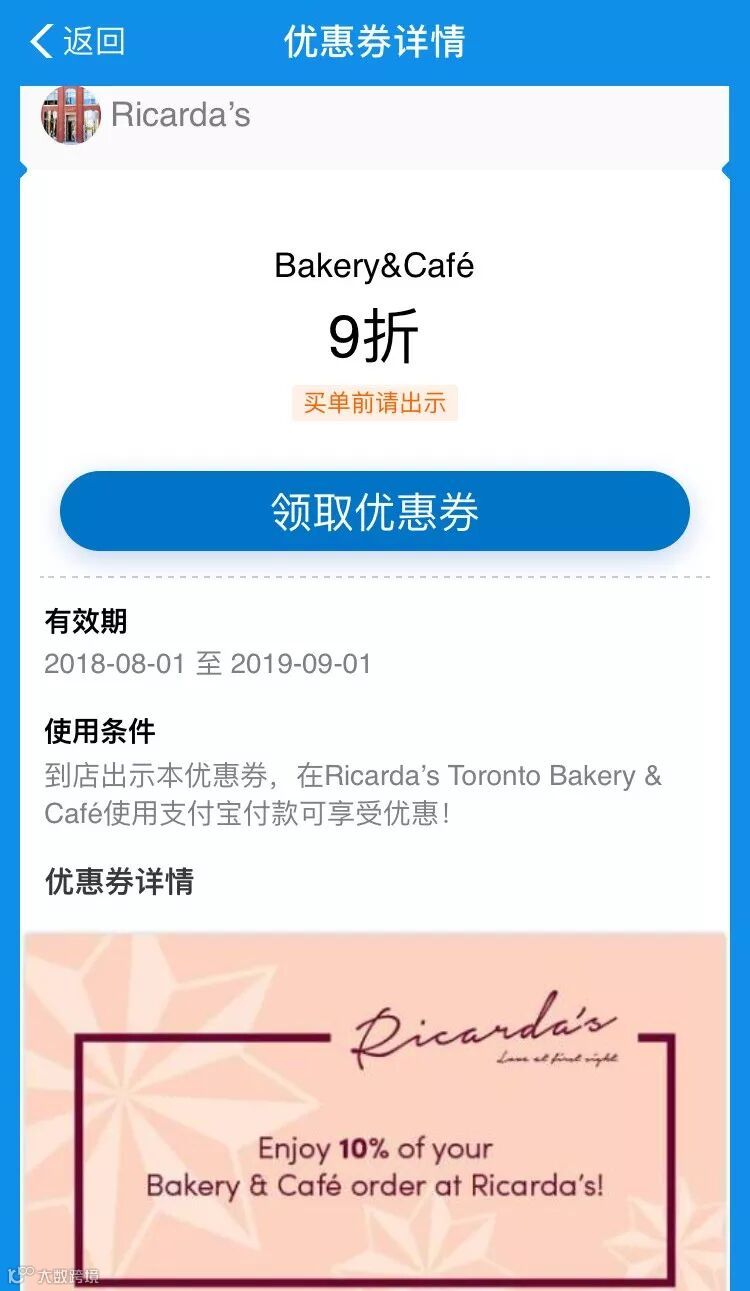 Ricarda's作为OTT Pay的合作商铺,为我们的粉丝提供了长达一整年的折扣福利:凡使用微信支付或支付宝消费Bakery&Cafe(面包与咖啡),出示下方电子券,即可获取9折优惠!