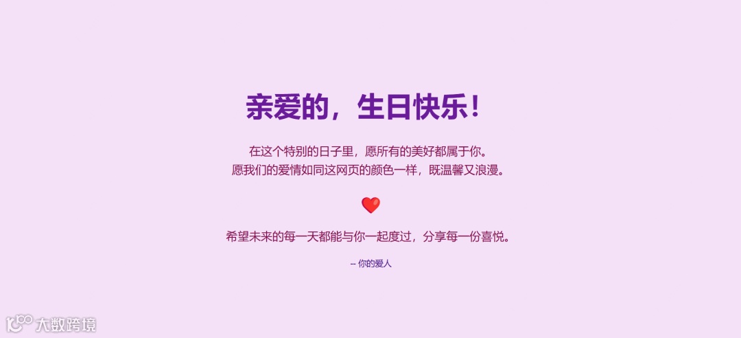 prompt:我女朋友的生日是5月21日,帮我制作一个浪漫高级的生日祝福网页,采用粉色和紫色为主。