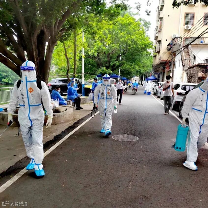为了核对清楚这些重要的信息,组员们穿着厚重的防护服,拿着酒精、登记表和笔,一层层楼去爬,一扇扇门去敲。“那时候已经到了大家睡觉的时间,我们特别注意沟通的语气和方式方法,绝大部分人还是很配合我们,他们在门里边说,我们趴在门外边墙上写”润埔发展集团的李积麟组长表示,一栋楼敲完后已是满头大汗,然而后面还有两栋三栋,极大地考验着组员的体力。回到酒店休息时已是凌晨4点,集团支援组10个人连夜完成摸查工作,确保所负责区域一人不漏、一码无差。截至5月9日,“10人小队”共开展上门摸查登记600多人次、电话摸查劝检群众596人次,协助完成大规模核酸检测10827人次,圆满完成组织分派的各项任务。