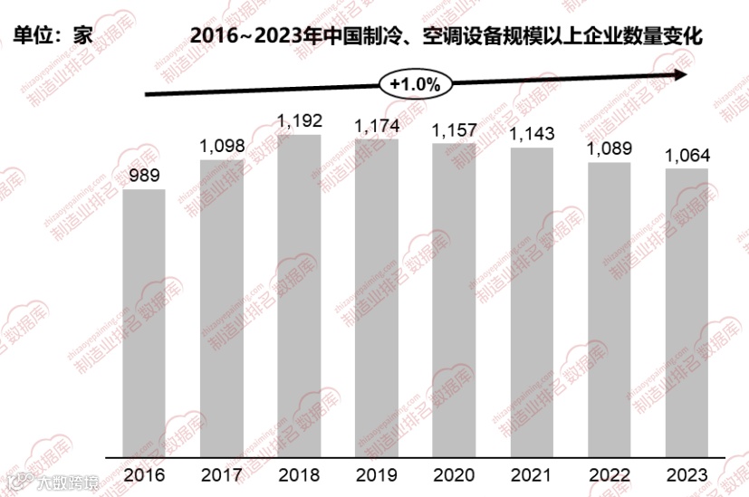 2016-2023年,中国制冷、空调设备规模以上企业数量呈现增长态势,8年复合增长率为1%。中国空调整机组装企业众多,市场竞争激烈,其中,美的、海尔、格力等知名品牌占据主导地位。