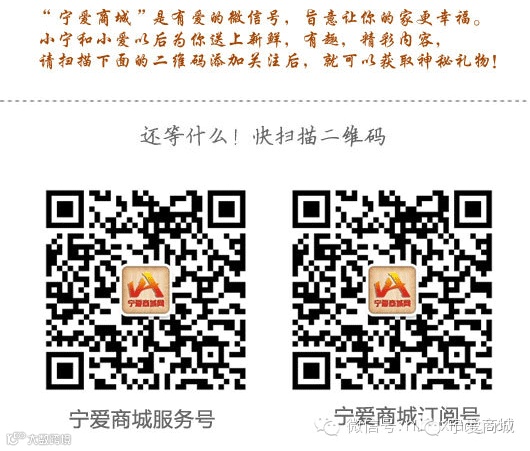 点击右上角“查看公共帐号”,或者去微信“添加朋友”底部栏“查找微信公众帐号——宁爱商城”,就可以关注小宁和小爱哦!