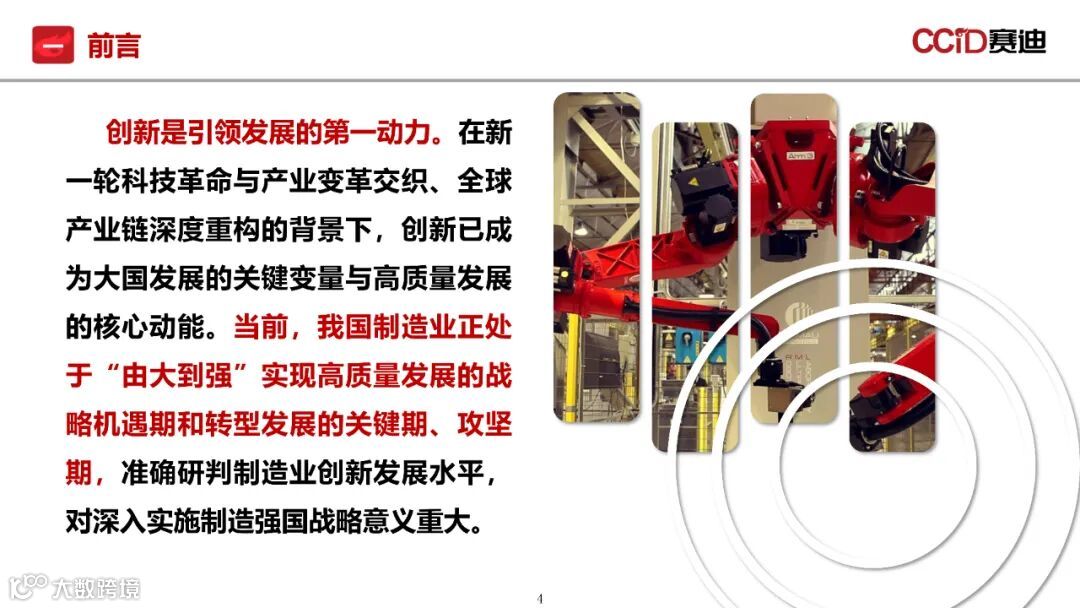 该报告指出,当前,创新已成为大国发展的关键变量与高质量发展的核心动能。我国制造业正处于“由大到强”的战略机遇期和转型发展的关键期,准确研判制造业创新发展水平,对于深入实施制造强国战略意义重大。