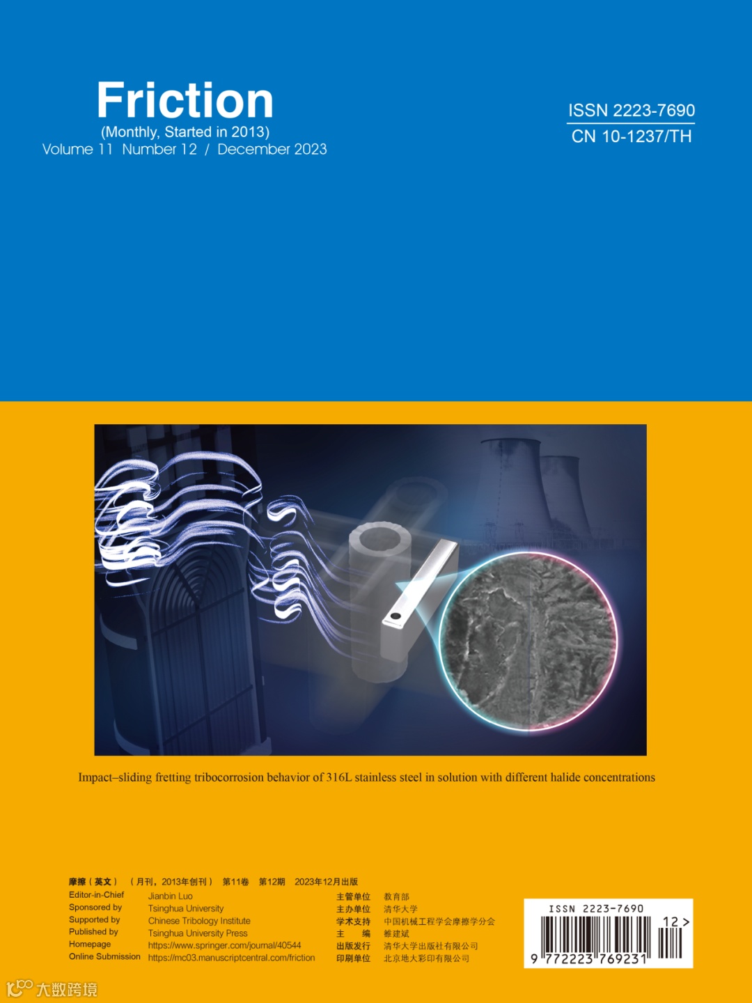 Friction(《摩擦(英文)》)是清华大学主办的国内首个摩擦学领域国际学术期刊,旨在发表和出版涵盖接触、摩擦、磨损、润滑、表面粘着和界面科学跨学科的创新性研究论文及专题性综述文章,致力于为国内外摩擦学和表面界面科学领域的学者搭建一流的国际学术交流平台,促进摩擦学在中国和国际学术界之间的交流和发展。其2022年影响因子为6.8,五年影响因子为7.4,位居Q1区。2019年入选“中国科技期刊卓越行动计划”领军期刊(全国共22项),2021年荣获“第五届中国出版政府奖期刊奖提名奖”。2022年变为月刊,年发文量120篇,在Springer平台和SciOpen平台同时完全开放获取出版。