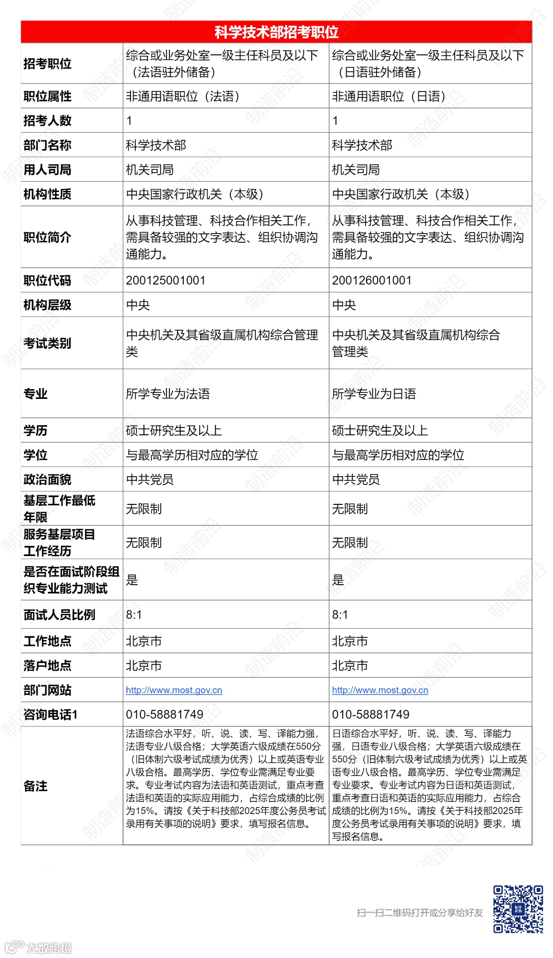 10月14日,中央公务员主管部门发布了中央机关及其直属机构2025年度考试录用公务员公告。『制造前沿』整理了与咱制造业人密切相关三个国家部门的公务员招录岗位信息,其中,科学技术部计划考试录用公务员13名、工业和信息化部计划考试录用公务员11名,国家数据局计划考试录用10名公务员。