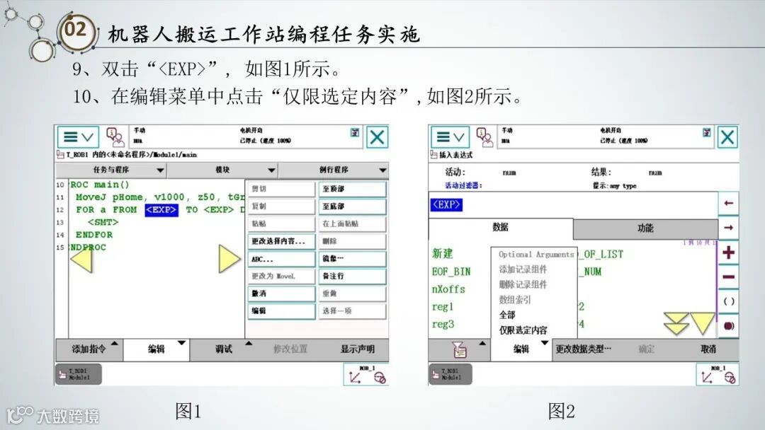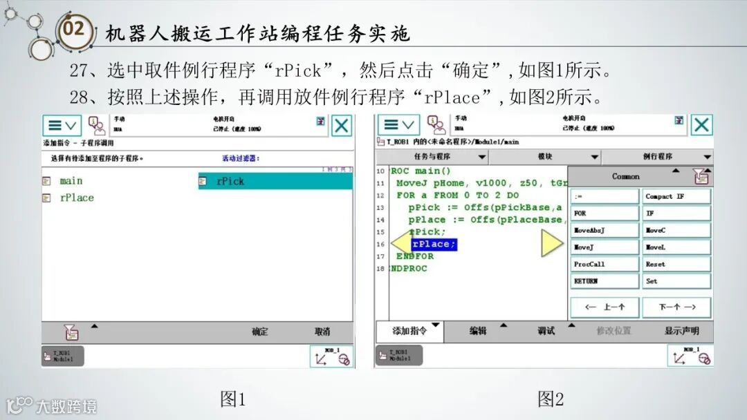 1. 示教再现型机器人:通过示教器记录机器人的动作,然后重复执行。