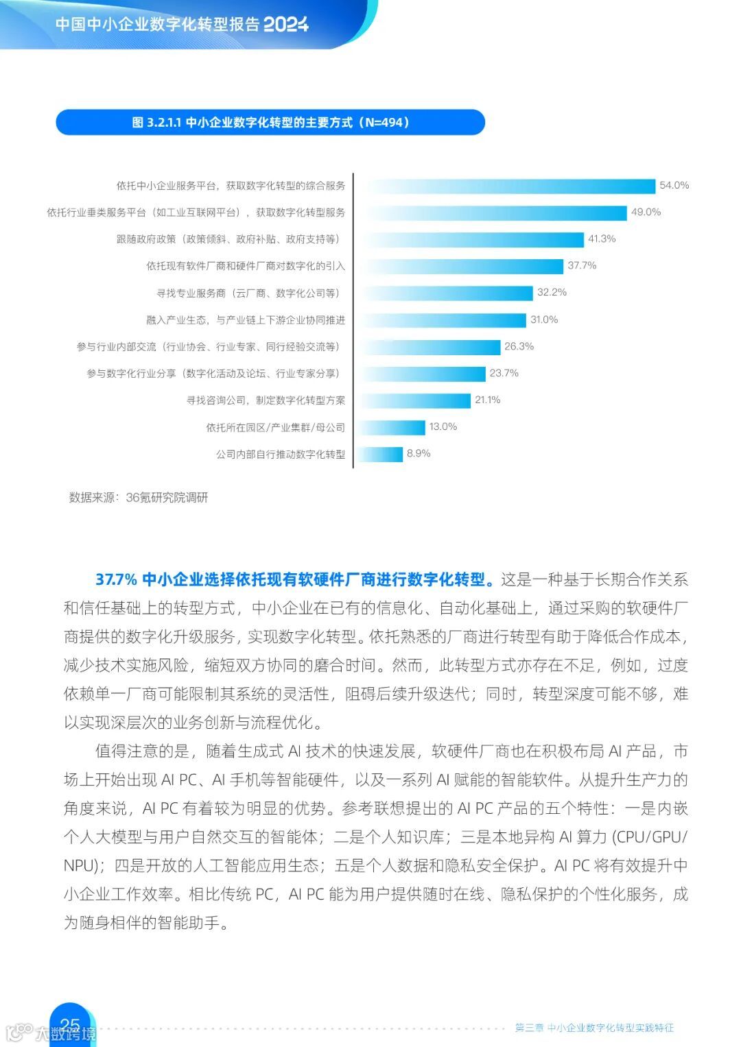 - 35.4%的中小企业通过内部管理的数字化转型提高了管理效率和响应速度,使企业能够更加灵活地应对市场变化。