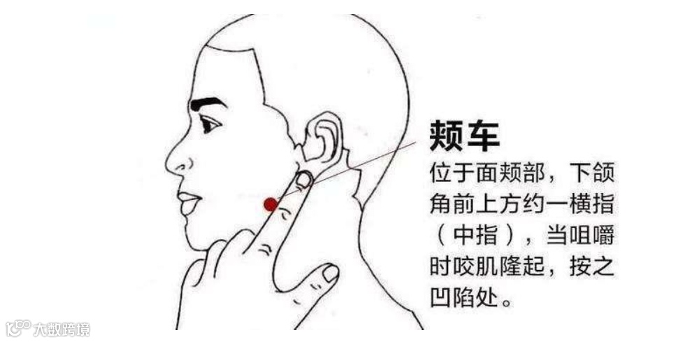 取穴:顺着胸锁乳突筋的前缘往下,下颚骨颊车之后。