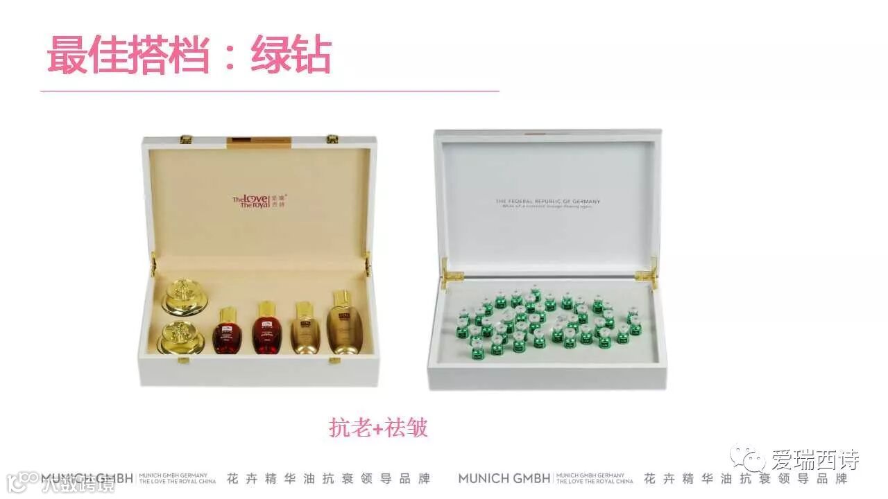 爱瑞西诗馥活抗衰套盒:选取纯天然有机植物为主要原料,采用现代先进生技工艺提取而成,富含天然有机植物活性成分,在迅速增加肌肤含水量,保障表皮细胞正常代谢的同时,专利亮肌成分可直达黑色素产生源头,源头上抑制黑色素的生成,快速增亮肤色,不间断提亮肌肤,彻底持久令皮肤白皙净透,持久实现速效亮肌和长效亮肌。