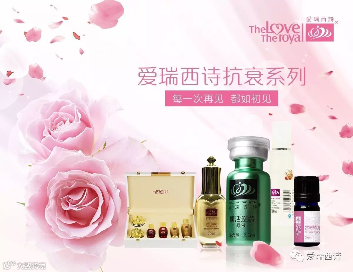 除了优质的公司外,我们还有专业的产品,爱瑞西诗的每一款美容品中都蕴含了爱瑞西诗的灵魂配方——滴滴珍贵的五花醇。五花醇凝练自保加利亚玫瑰、德国洋甘菊、法国薰衣草、茉莉花和橙花五种花卉精华,曾是德国皇宫沿用数百年的美容秘方,2004年,爱瑞西诗德国慕尼黑实验室的首席科学家在皇室档案发现了这个配方,经过数万次的实验,才终于研制了德国皇室秘方与现代科技完美结合的五花醇配方。目前,爱瑞西诗是全国难得拥有自己灵魂配方的美容护肤品牌,浸润着五花醇的每一款爱瑞西诗圣品都是对天然精粹、高贵高效理念的最佳诠释。我们以博爱之誉而赢得尊重,因皇室之缘而彰显高贵。