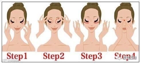 4、接着从眼部下方开始,由睛明穴向眼尾轻轻地按压,最后在从眼部上方,由内向外轻轻按压。这一步对眼部美容非常的重要,切记!