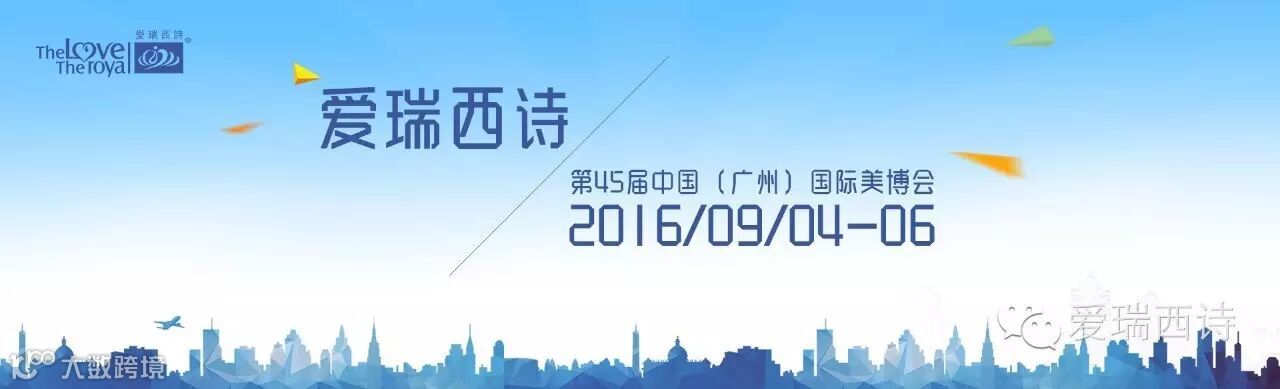 2016年9月4-6日广州琶洲,第45届中国(广州)国际美博会,爱瑞西诗整装待发,以崭新的姿态迎接您的到来!