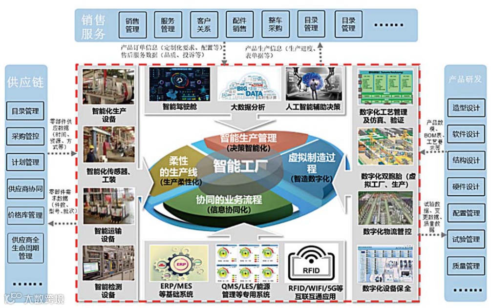 本文根据智能制造蕴含的三个维度的体系架构,结合产品全生命周期特点和整车工厂系统层级特点,企划了适合整车工厂的智能制造体系架构(见图2)。