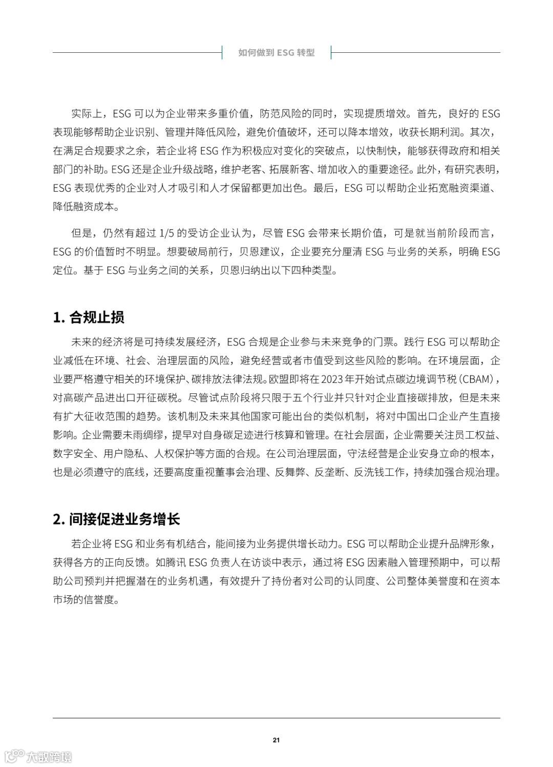 今天分享哈弗商业评论与贝恩发布的报告——《中国企业ESG战略与实践白皮书:放眼长远,激发价值》。