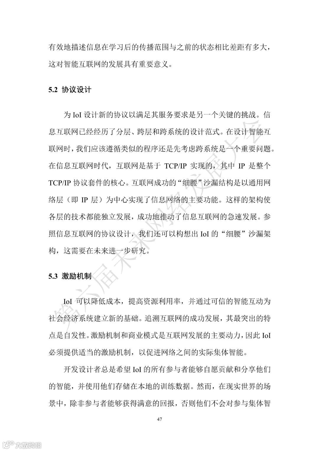 随着信息通信网络技术的快速发展,在云计算、边缘计算、终端 设备中部署的智能模型和资源变得越来越多,如何高效利用这些智能 资源,驱动各行各业智能化水平的提升成为当前业界面临的重要课题。在“网络需要智能、智能需要网络”的背景下,智能互联网的概念得以 提出。智能互联网旨在将分布式的智能资源进行互联,充分利用和共 享智能资源及智能服务,提升智能资源的利用率,同时提升设备和应 用的智能化决策水平。