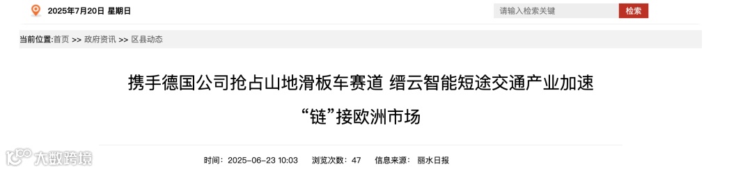 “此次研发合作的山地滑板车将主要出口欧洲国家,我们的目标是3年后出口销售额超过1亿元。”华锐动能科技(丽水)有限公司与德国Sun Venture公司签约,合作研发Fast Track山地滑板车项目。后续双方将成立合资公司,整合中国供应链与欧洲市场资源,开展轻型电动车的设计、采购及出口业务。