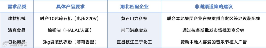 - 基建相关产业(黄石建材/襄阳机械):主攻西非英语区(尼日利亚、加纳),采用EPC模式捆绑出口,联合中资基建企业承接项目。