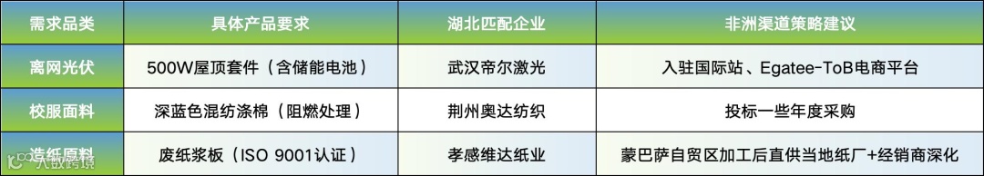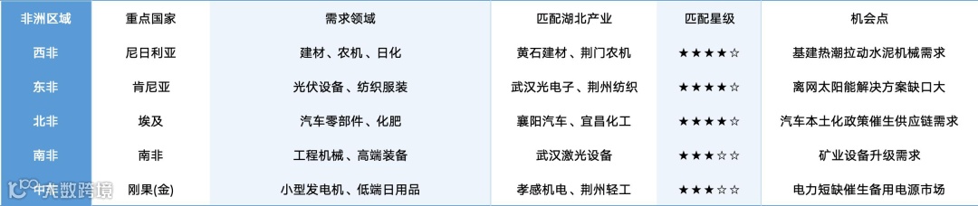 非洲重点国家需求拆解匹配