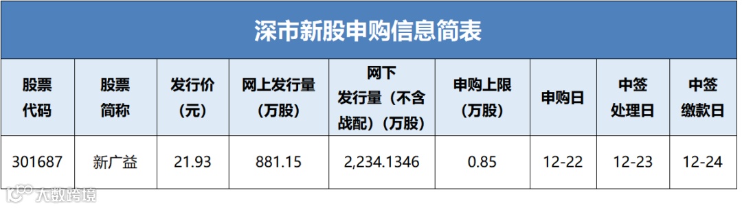 市新广益电子股份有限公司(简称:新广益)将通过深交所网下发行电子平台和交易系统发行新股,具体信息如下。