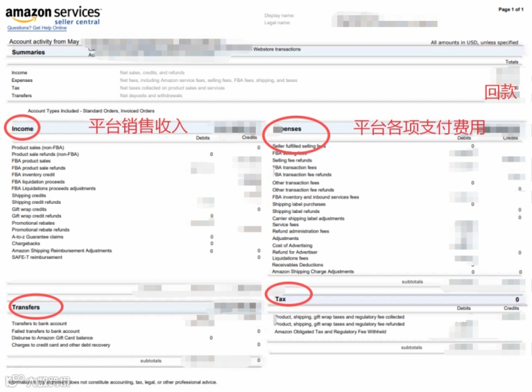 本文件是所有税务处理工作的核心依据。它汇总了每个结算周期内的订单收入、平台佣金、FBA费用、退款及其他调整项目,并计算出最终的实际放款金额。该报告是进行收入核查与税务申报的最终凭证。