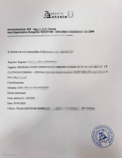 在提交申请后,Francesco 团队经历了多轮细致的核查与问询。我们积极为其提供中国市场的相关信息和案例支持,帮助其更好地向意大利税局解释服务模式和合规保障措施。终于在8月份成功获取了意大利税务局(Agenzia delle Entrate)官方资质认证!