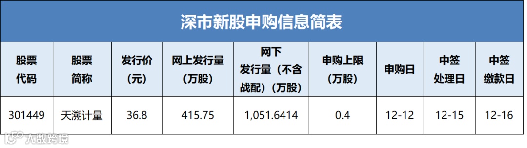 天溯计量检测股份有限公司(简称:天溯计量)将通过深交所网下发行电子平台和交易系统发行新股,具体信息如下。