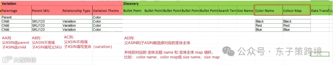 (2)Parent_sku:父体可以不用填写,子体填写和第B条和父一样的sku就行