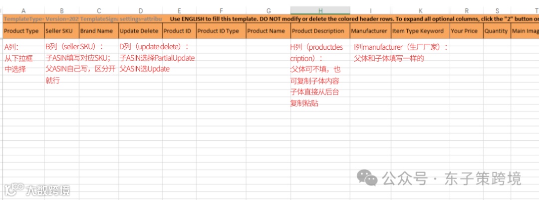Step1:「创建新模板,下载对应类目的模板→ 填写父体和要删除的子体信息(如 SKU、ASIN)」