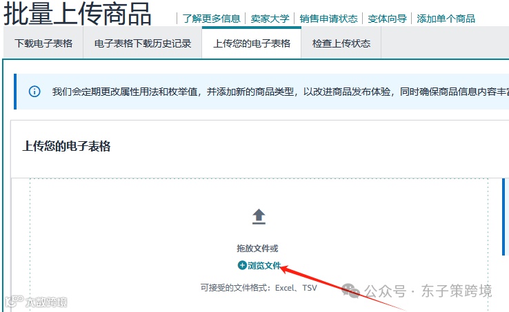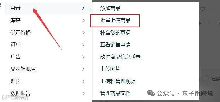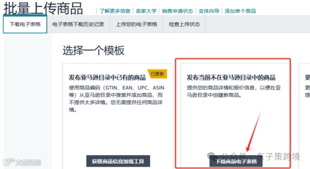 Step1:后台「目录 →批量上传商品 →下载最新表格」