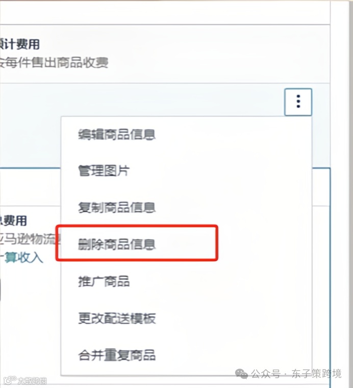 Step2:「返回库存管理页面 → 点击对应子体的"..."→ 选择【删除商品信息】→ 保存提交」