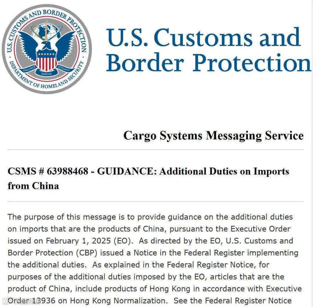 2025年2月4日,该关税政策正式生效,同时美国宣布终止中国商品进入美国的T86清关模式。
