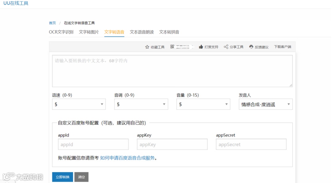 易用性:新手避开学术级工具,优先选界面直观、无需学习成本的工具(UU 在线工具、冬瓜配音)