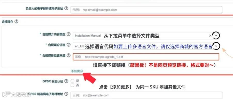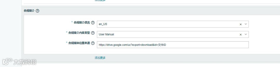 ✅合规性媒介内容类型:从下拉菜单选对应文件类型(比如 “使用说明书”“安全手册”)
