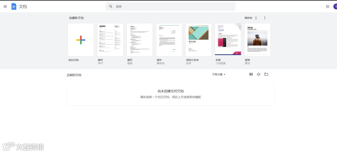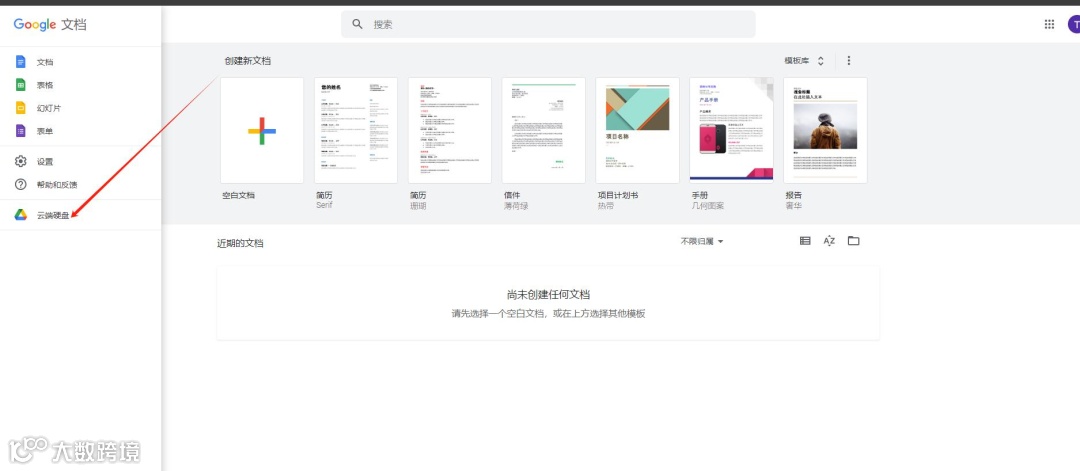 打开 Google Docs(https://docs.google.com/document/u/0/)