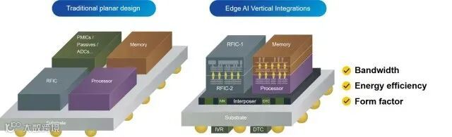 垂直堆叠并非适用于所有模块,差异化采用已成行业共识:NPU与Memory组合最能受益,是当前技术落地主战场;ISP、PMIC因对热与噪声敏感,仍适合平面布局;RF、Flash、MEMS等则通过“成熟节点+先进封装”实现成本与性能平衡。未来Edge AI SoC将是多技术节点、多封装形式、多物理域组成的系统级“混合架构”。