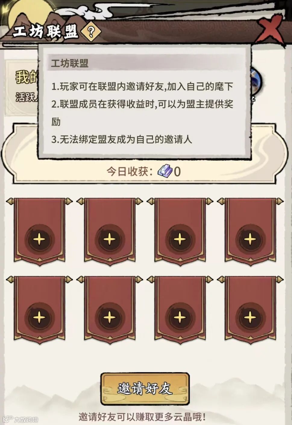 -直推上级可获每次收获量的10%,间推上级获5%,上下级收益按组队实际所得返还,邀请好友可额外赚取云晶。