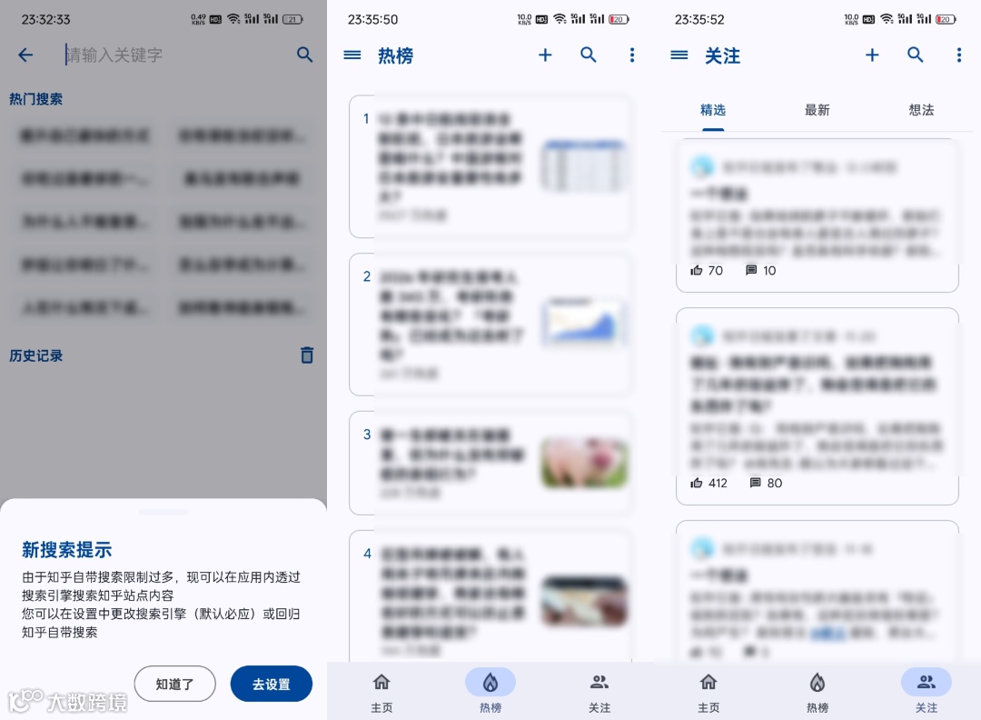 而本期要介绍的就是某乎的第三方开源版本,该版本相较于原版更为简洁,但是内容上和原版完全一致,不过它的搜索功能是调用的搜索引擎,这个搜索引擎你也可以自己切换,这点还是很方便的,并且软件该有的功能都有,很适合作为非高强度的用户使用,当然啦,原版也非常好用,小伙伴们可以按需选择。