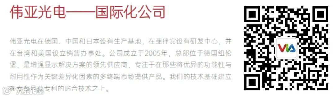 如需深入了解伟亚光电先进光学贴合解决方案如何助力提升显示产品性能,欢迎访问官方页面:https://www.via-optronics.cn